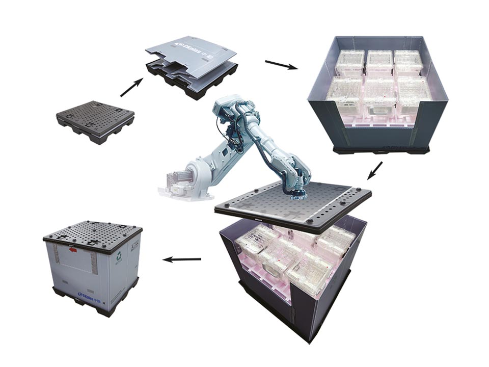 The HaiBox from CK Plas is a robust, foldable pallet box for safe transport and storage of FOSBs and wafer shipping boxes.