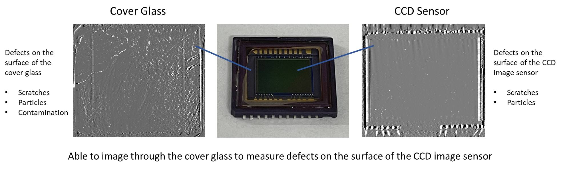 Able to image through the cover glass to measure defects on the surface of the CCD image sensor